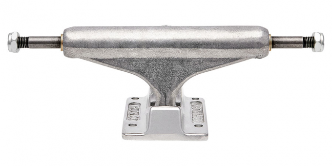Super lightweight mid-profile truck with forged baseplate, hollow axle and kingpin in classic polished silver with orange cushions, ano red with black cushions, or matte black with red cushions. 10% lighter than Stage XI. 53.5mm tall