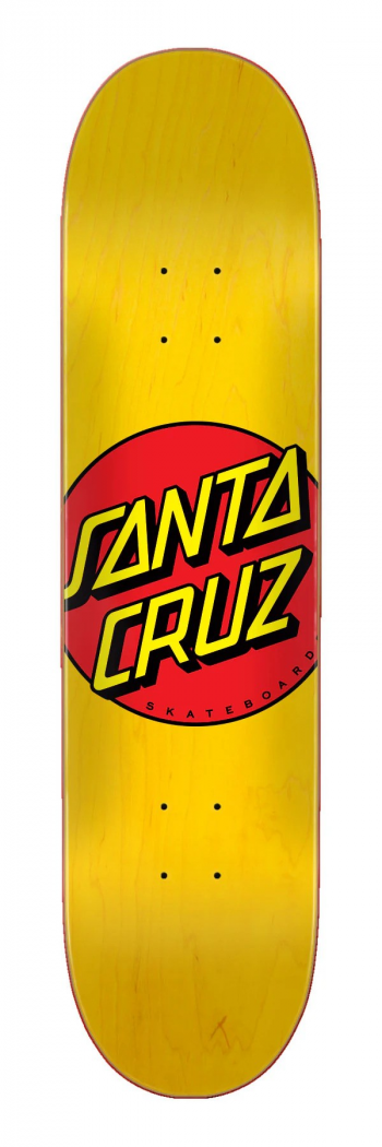 Santa Cruz Skateboards Classic Dot Series deck on new 3D concave. 3D concave features a medium depth concave with lower, continuous nose and tail kick, plus concave in the nose in tail that combine to create pockets to lock in your feet. 7 ply North American Maple pressed individually using epoxy making a strong, responsive deck with long lasting pop and consistent concave and kick, topped off with our signature matte finish.Harga